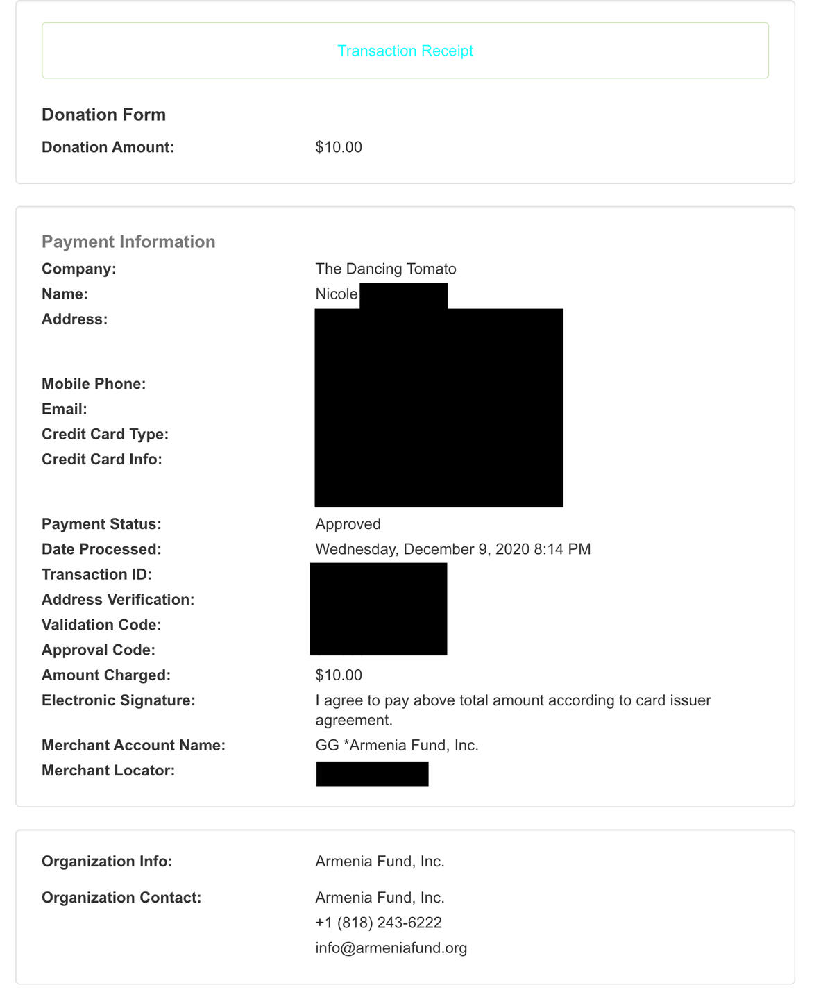 For the month of October-December 2020, Troupe de Tomate raised $10 for ArmeniaFund.org "the largest humanitarian organization serving the needs of the Republic of Armenia and the Artsakh Republic." These proceeds will go directly to medical and surgical equipment needed due to the war and terrorism caused by Turkey and Azerbaijan against the Armenian people living in Artsakh. Learn more here.