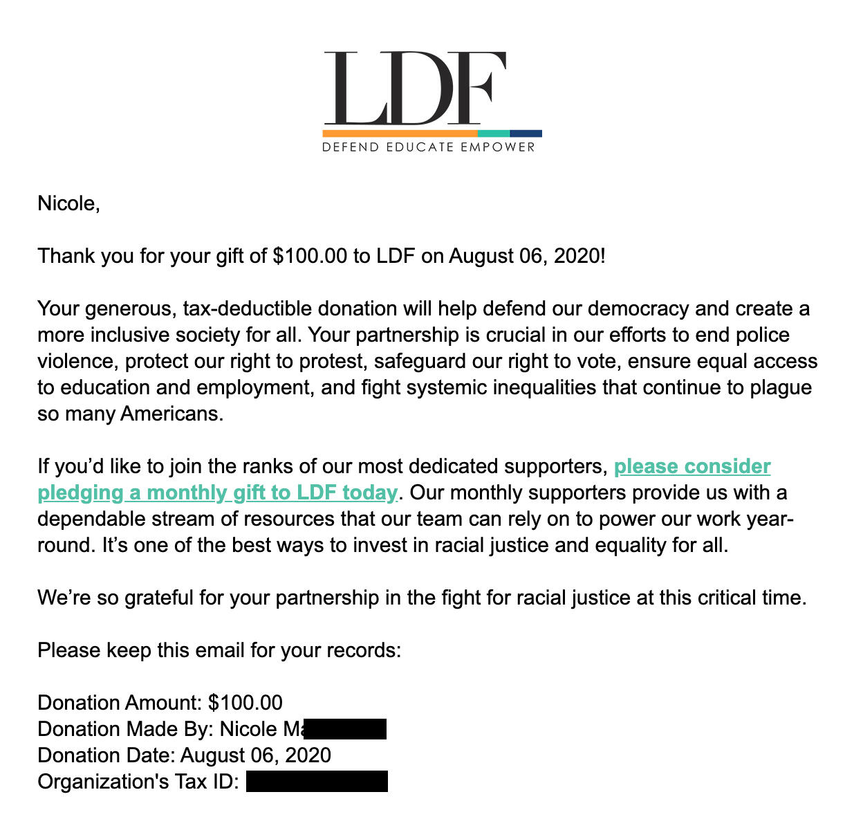 For the month of June - July Troupe de Tomate raised $100 for NAACP LDF a non-profit organization that focuses on criminal justice, economic justice, education and political participation here in America. From the time it was founded till now LDF's mission is to "achieve racial justice, equality and an inclusive society." Learn more: